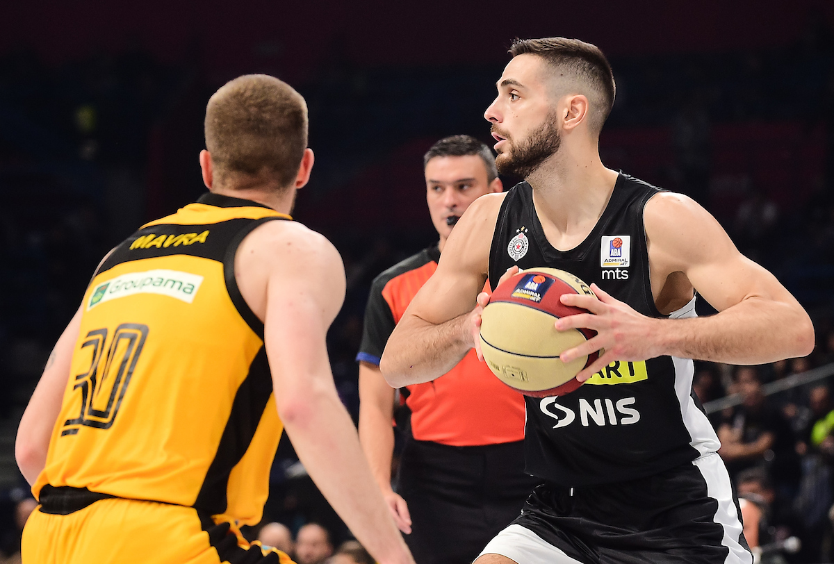 Mavra pravi veliku probleme u napadu Partizana, prvo je pogodio za dva, a onda asistirao ka Kalajžiću koji pogodio uz faul. 58:62