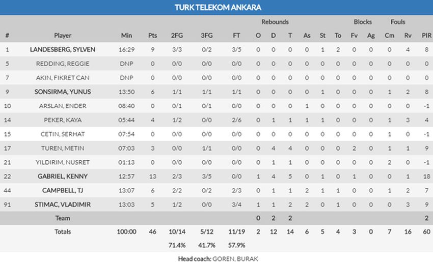 İlk yarı sonucu: Türk Telekom 46 - 32 @PartizanBC pic.twitter.com/io80qLfdoG
