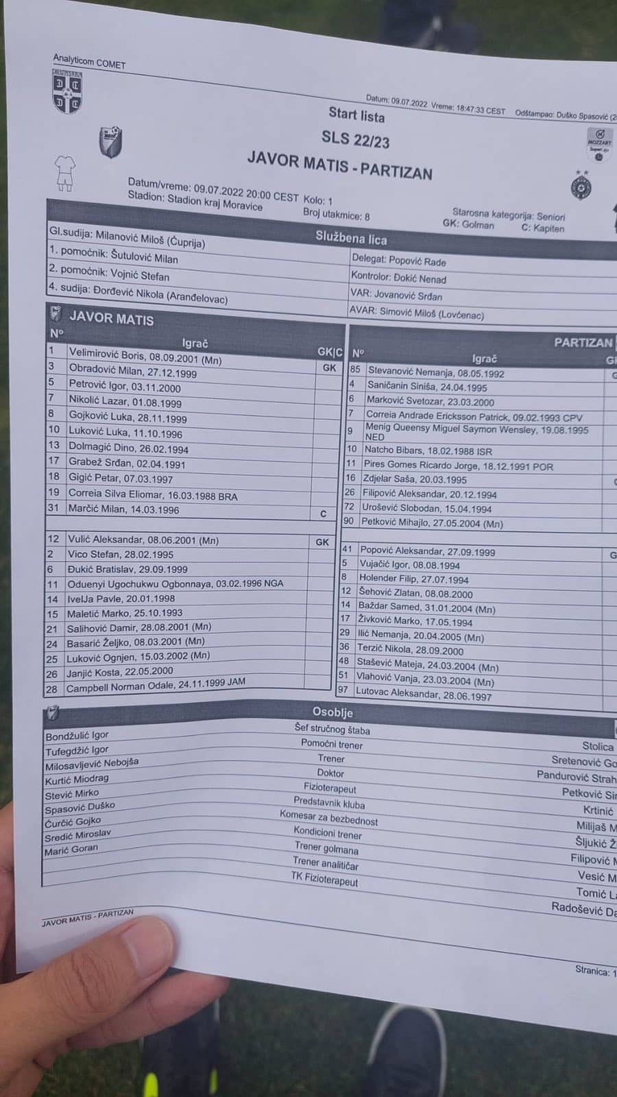 FK Javor Matis 🆚 FK Partizan pic.twitter.com/oBkiOHhkh4