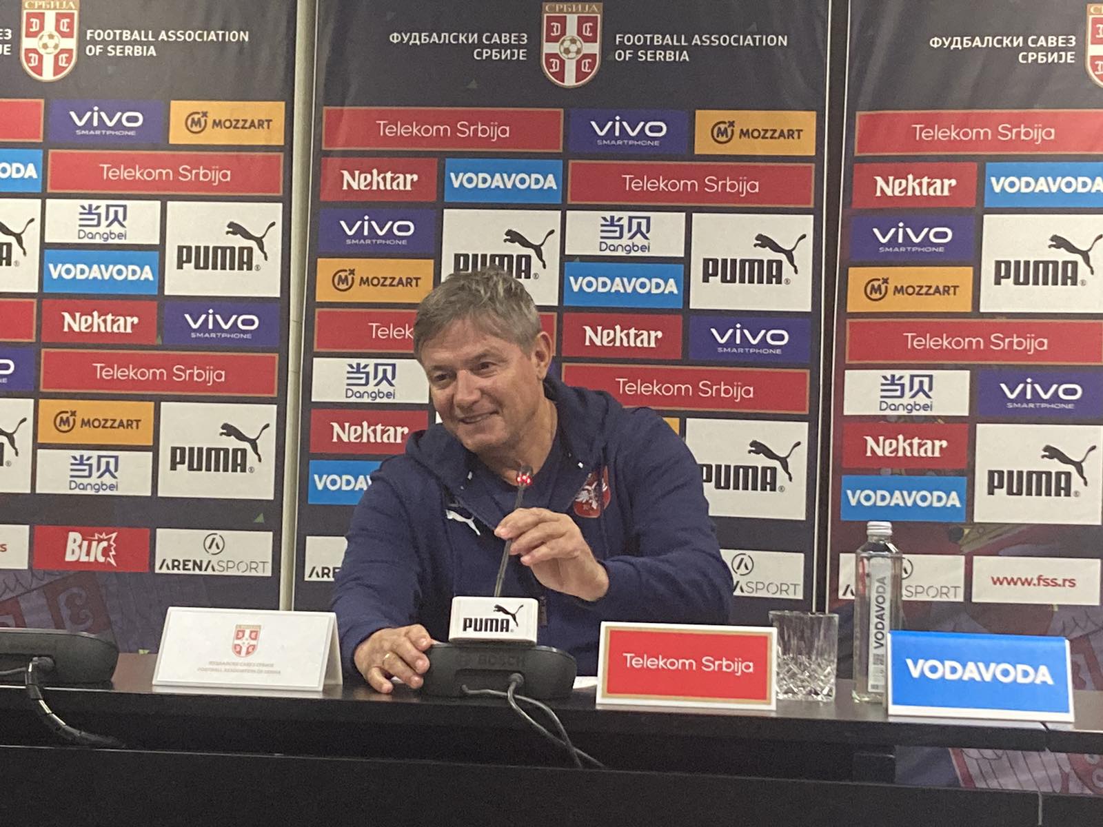 Selektor Srbije Dragan Stojković Piksi obratio se okupljenim novinarima u sportskom centru u Staroj Pazovi pred početak kvalifikacija za Evropsko prvenstvo.