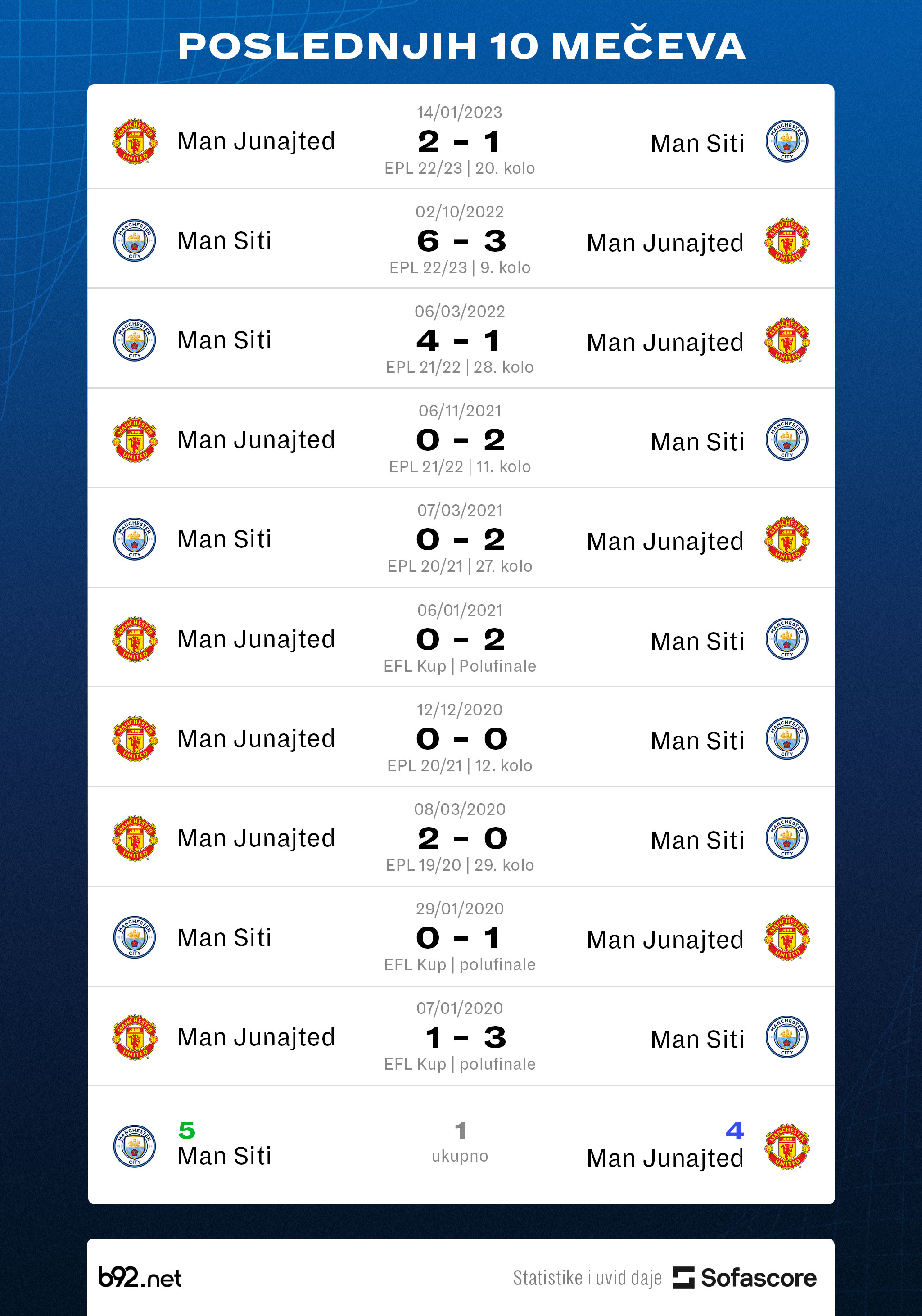 U ligaškim okršajima, po jednu pobedu su ostvarila oba tima. Građani su bili furiozni na Etihadu rezultatom 6:3, dok su Đavoli servirali osvetu na Trafordu rezultatom 2:1.