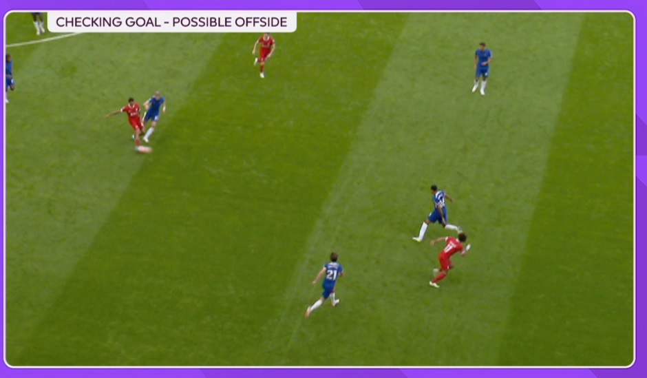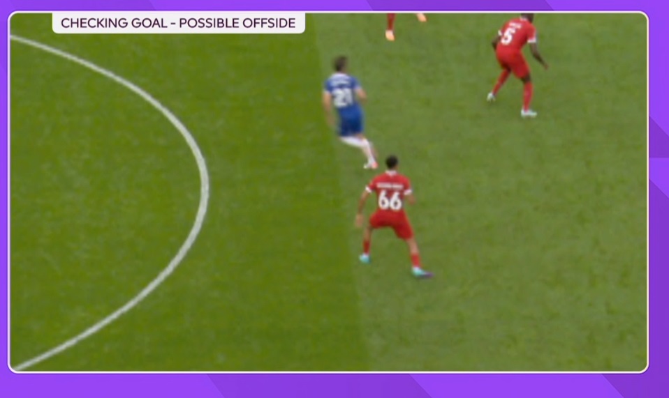 Čilvel se aktivirao nakon ubačene lopte, bio je, ipak, za pola kopačke iza poslednjeg igrača Liverpula i otud mu je gol poništen.