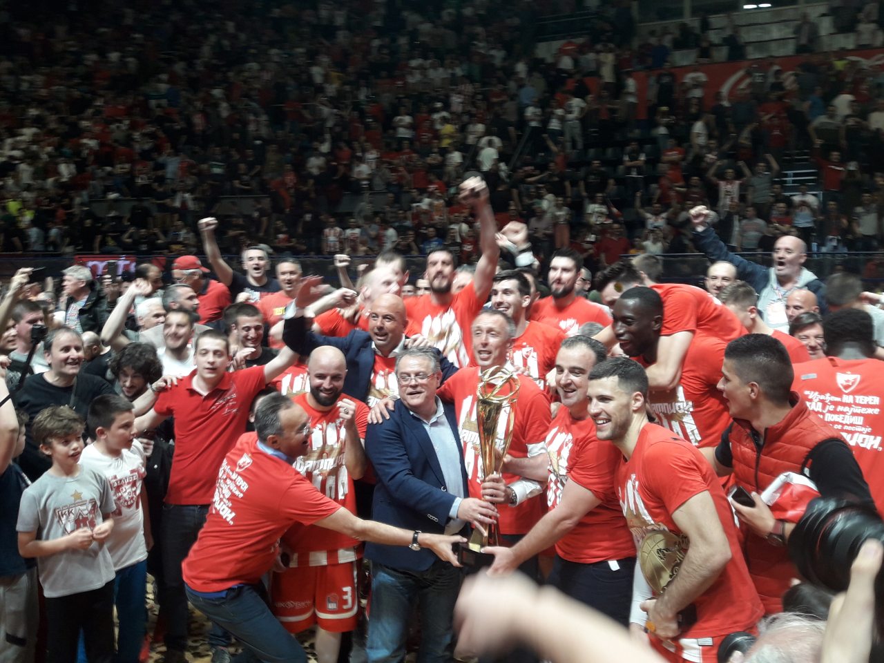 Košarkaši Crvene zvezde su osvojili šampionsku titulu u ABA ligi pobedom nad ekipom Budućnosti u petom meču finalne serije plej-ofa.