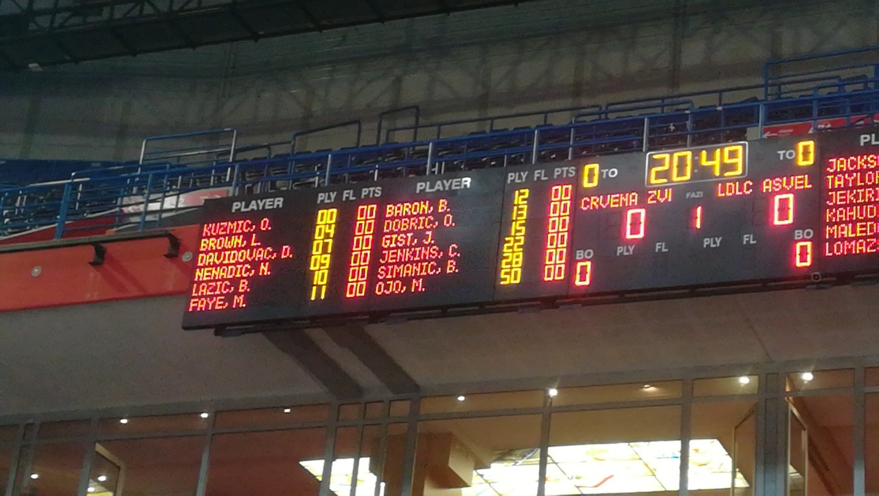 Igrala je Zvezda veoma dobro do minut do kraja prvog poluvremena. Tada je neshvatljivo popustila, ASVEL je napravio seriju 6:0 i crveno-beli imaju "samo" +4 posle 20 minuta.
