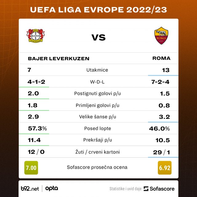 Fudbaleri Sevilje i Rome će igrati u finalu Lige Evrope, dok će se za trofej u Ligi konferencija boriti Vest Hem i Fiorentina.