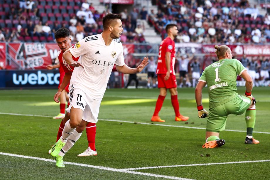 Pokazuje Riki Van Volfsvinkl zašto je igrao za veliki broj evropskih timova. Lucidan pas 33-godišnjeg napadača je stavio Misiđana u poziciji da bude sam ispred Novaka Mićovića, ali mladi golman čuva Čukarički.