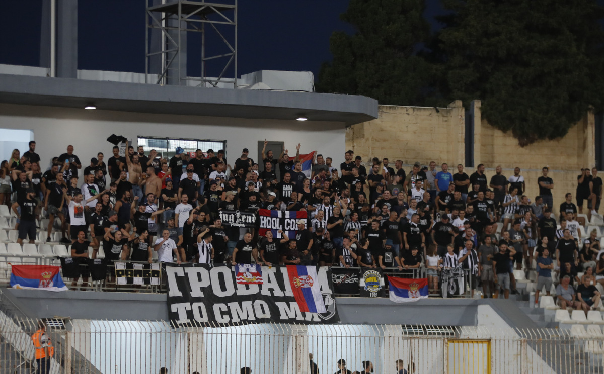 Čuje se "Napred, Partizan" na Nacionalnom stadionu koji prima oko 16.000 gledalaca. Trenutno je na njemu trećina kapaciteta, a svoje mesto u gostujućem sektoru je našlo i nekoliko simpatizera crno-belih.