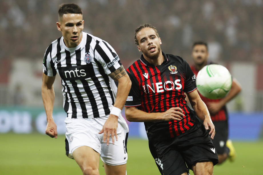 Fudbaleri Partizana poraženi su protiv Nice rezultatom 2:1 u meču petog kola grupe D Lige konferencija.