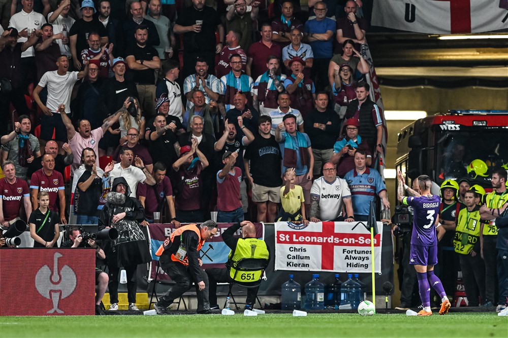 Pokušao je kapiten Fiorentine da izvede korner, ali su ga navijači engleskog tima zasuli čašama.