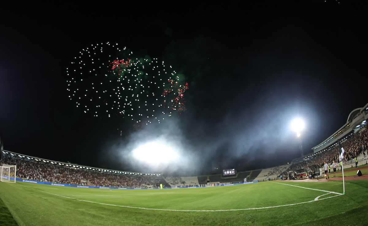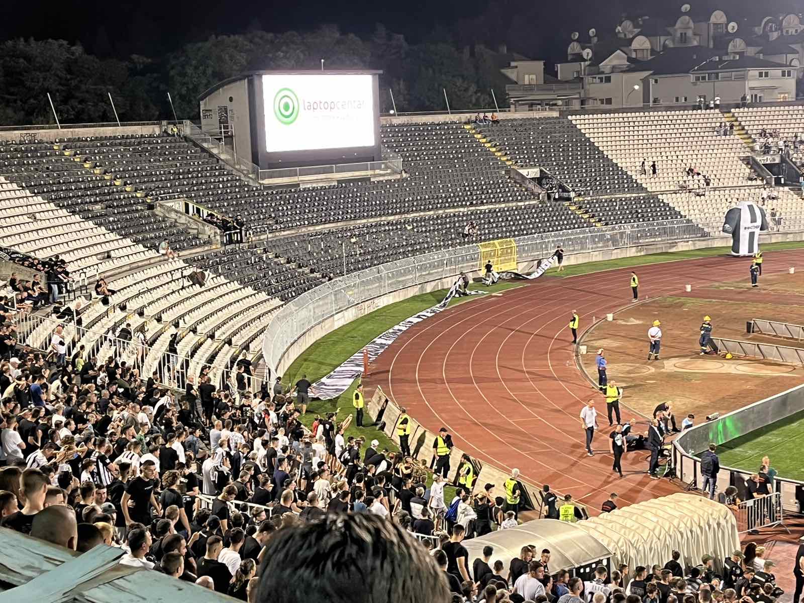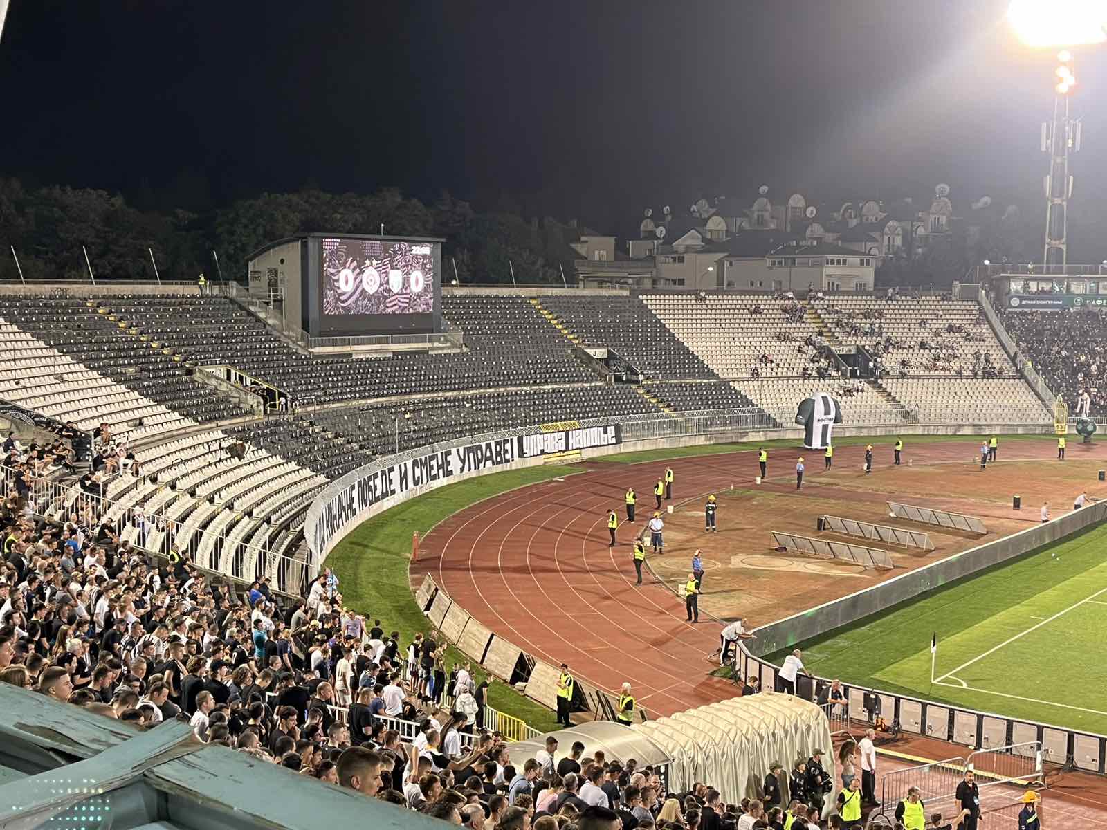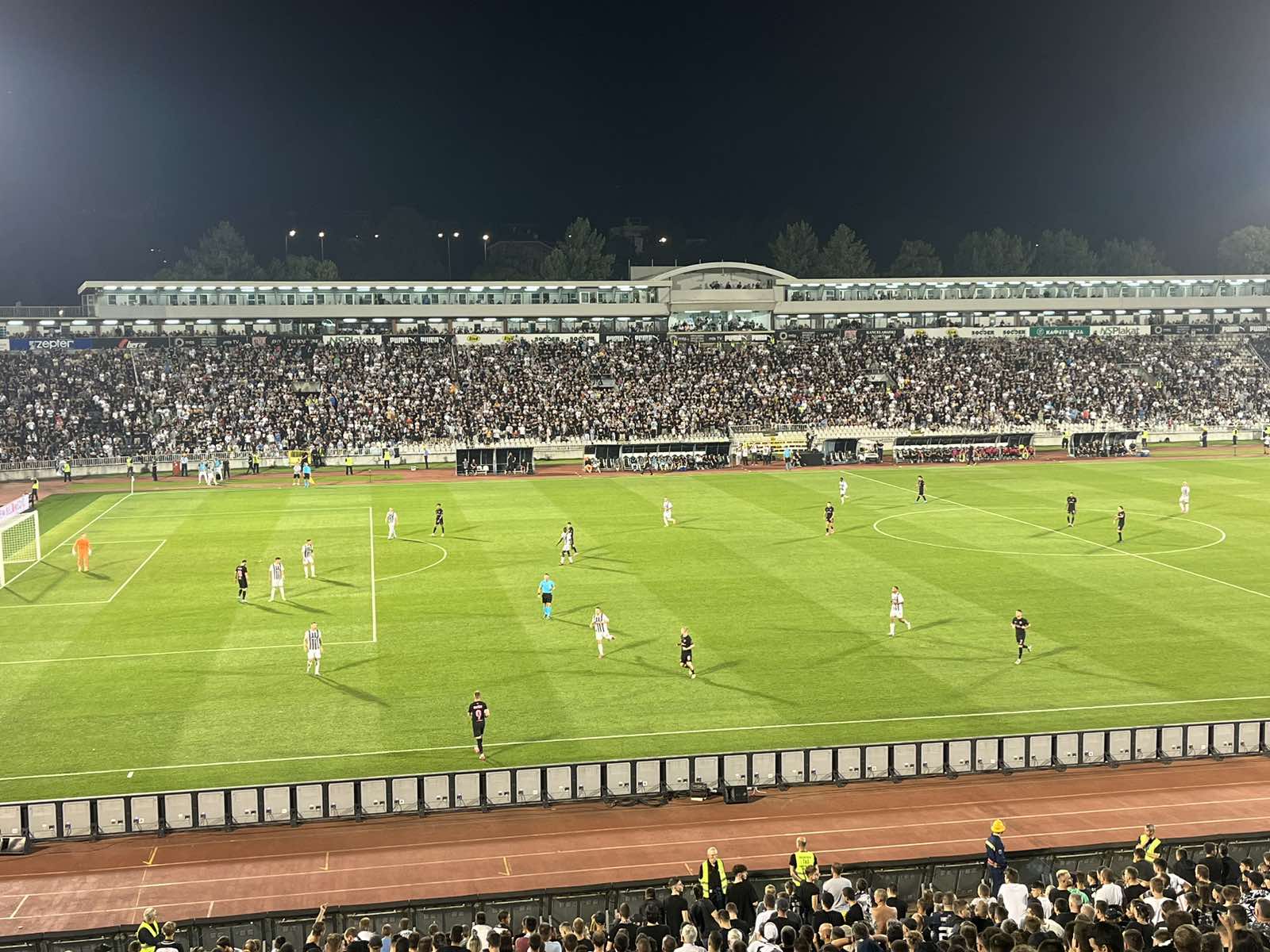 U toku je intoniranje himne "Da volim crno-bele", pa kreće revanš meč 3. kola kvalifikacija za Ligu konferencija. Podsećamo, Partizan je u Azerbejdžanu izgubio sa 2:0 i sada mora da napada...