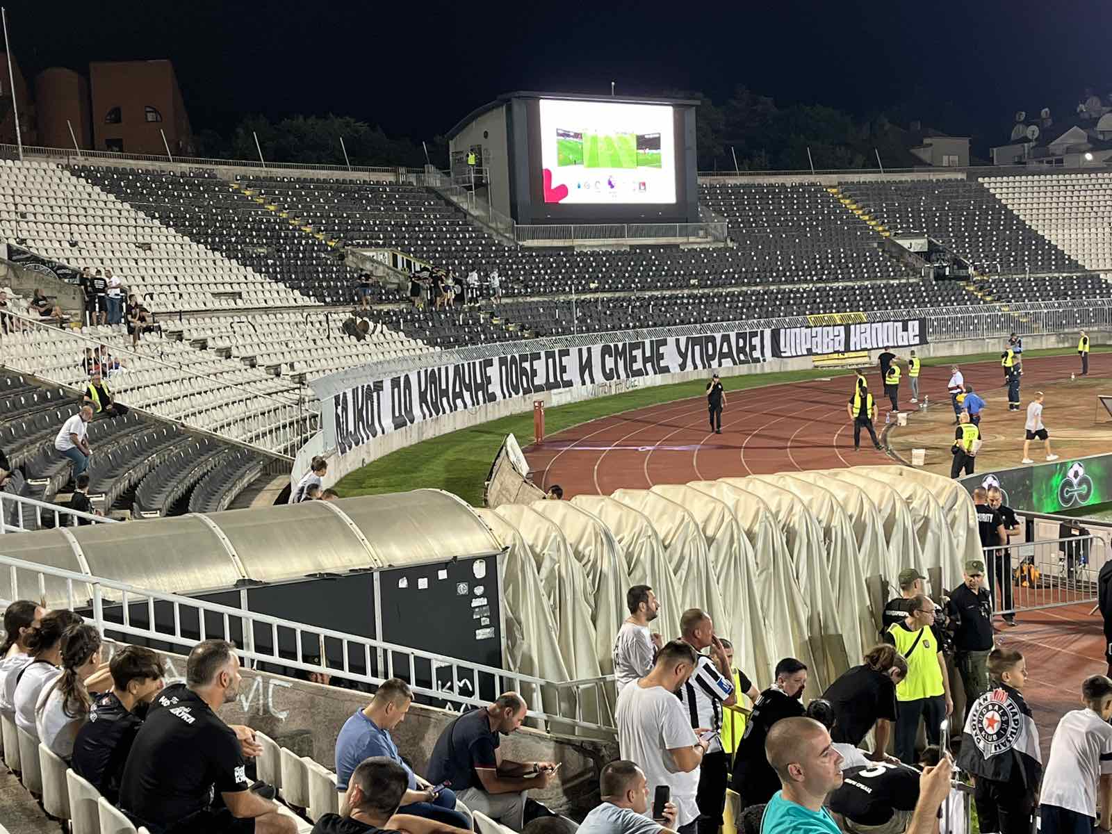 Navijači Partizana neće organizovano navijati večeras. Oni nezadovoljstvo izražavaju bojkotom protiv uprave kluba koja već duže vreme ima katastrofalne rezultate.