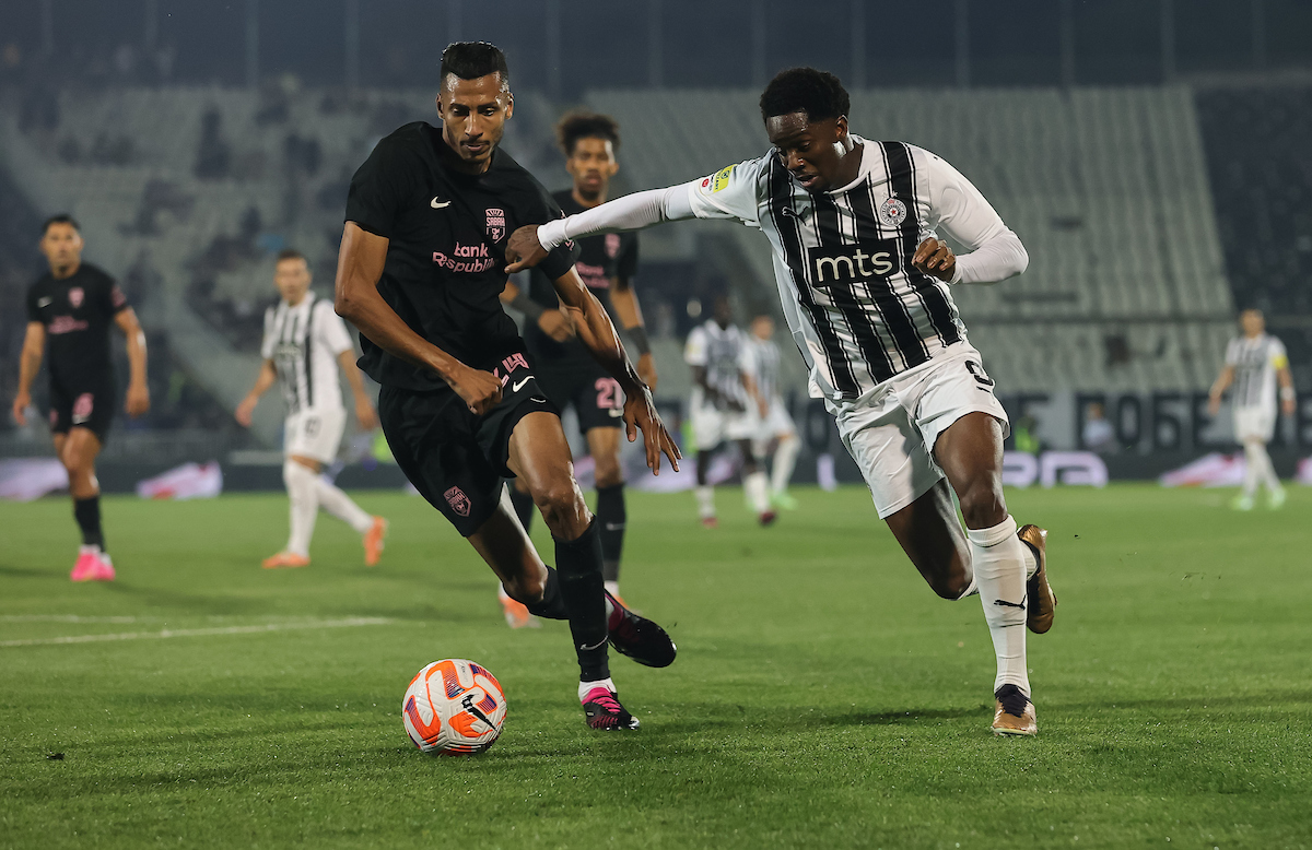Partizan vodi. Prvi gol u Evropi za Mateuša Saldanju, a treći u crno-belom dresu dok se sa tribina ori "Uprava napolje"