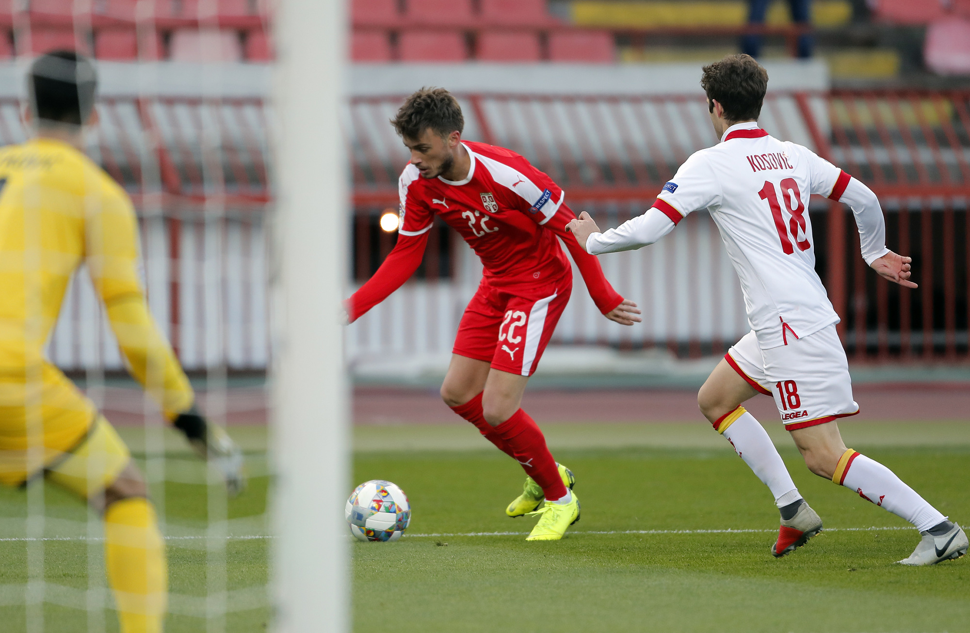 17' Mogla je ovo da bude dobra šansa za Crnu Goru, ali je Veljković hladnokrvno oduzeo loptu Jankoviću.