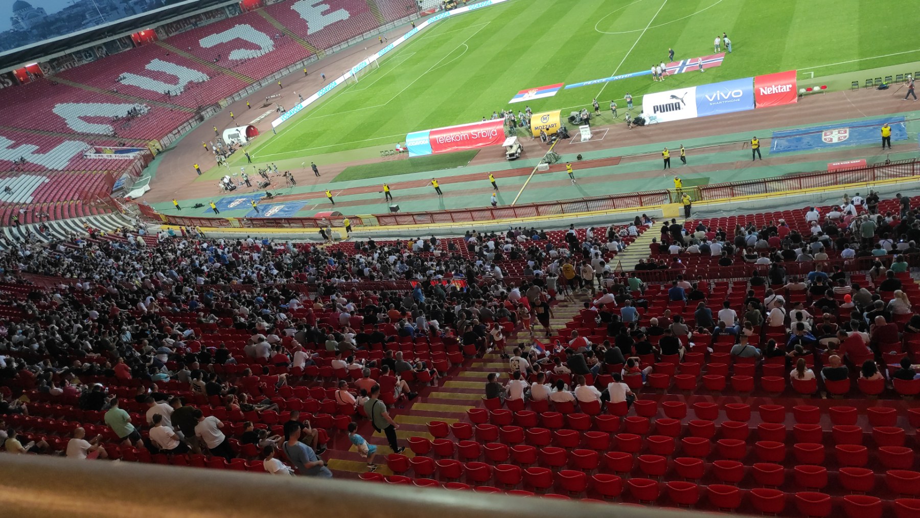 Bilo je dosta pauza u prvom delu igre. Štaviše, jedna je u toku dok se ukazuje lekarska pomoć fudbaleru Norveške.