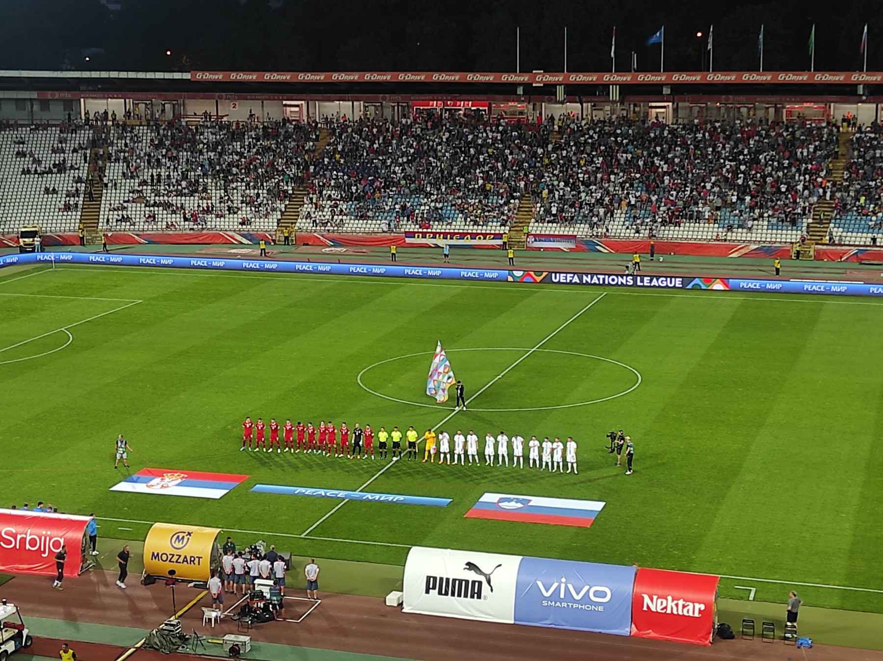 Početni udarac su izveli fudbaleri Slovenije.