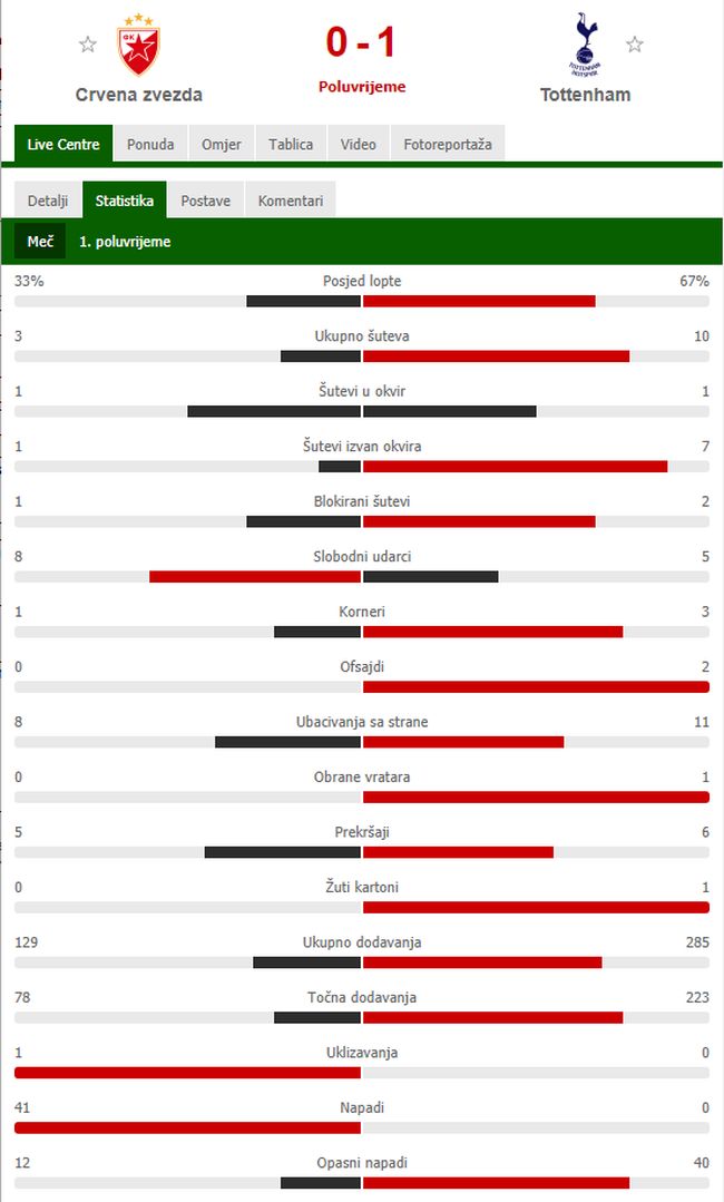 Fudbaleri Crvene zvezde poraženi su ubedljivo od londonskog Totenhema 4:0 (1:0) u meču četvrtog kola Lige šampiona.
