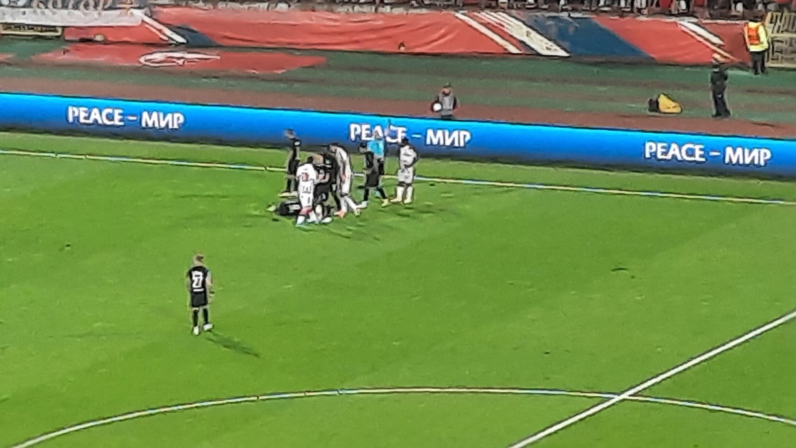 Borjan je sa loptom stigao do protivničkog šesnaesterca i centrirao. Istrčao je Koen i nakon toga povređen pao. Ostala je nebranjena mreža, ali to nije iskorišćeno, a svakako je kasnije i prekinuta igra.