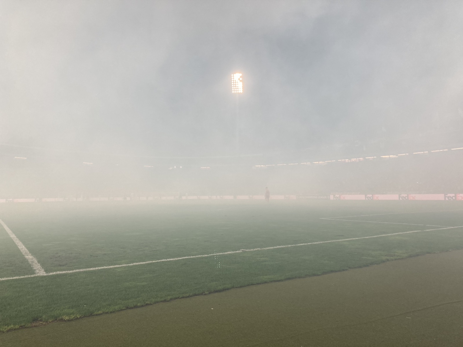 9‘ Bakljada izraelskih navijača, slaba vidljivost na "Marakani"