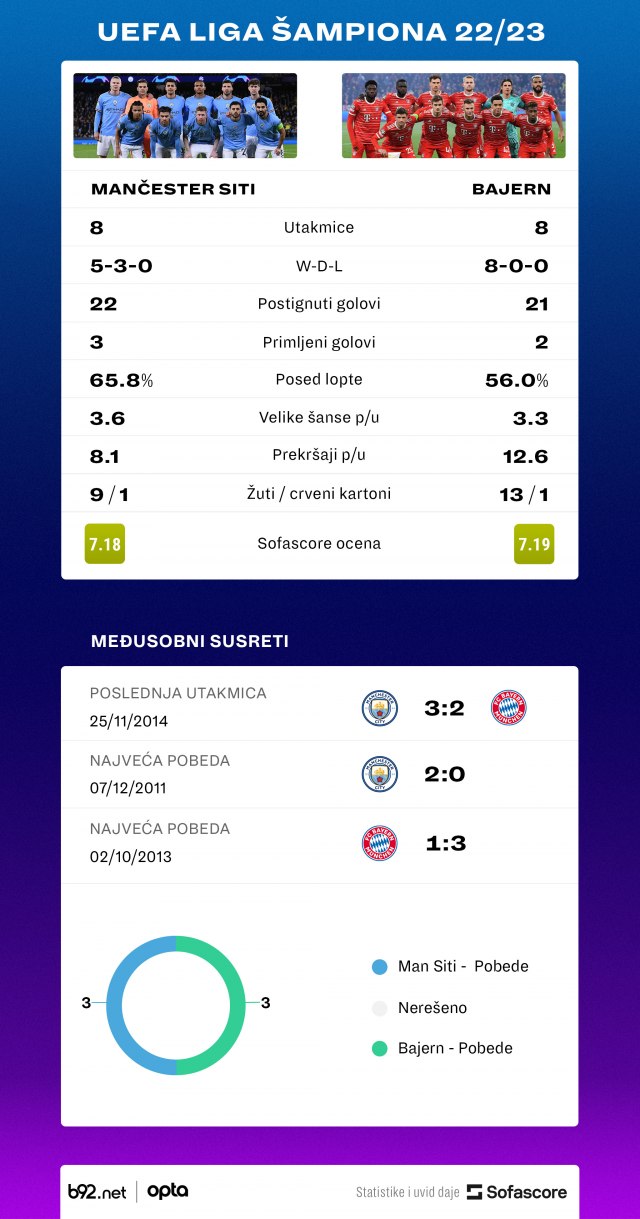 IMamo spektakularni okršaj pred nama, a sastaju se Mančester Siti i Bajern Minhen.