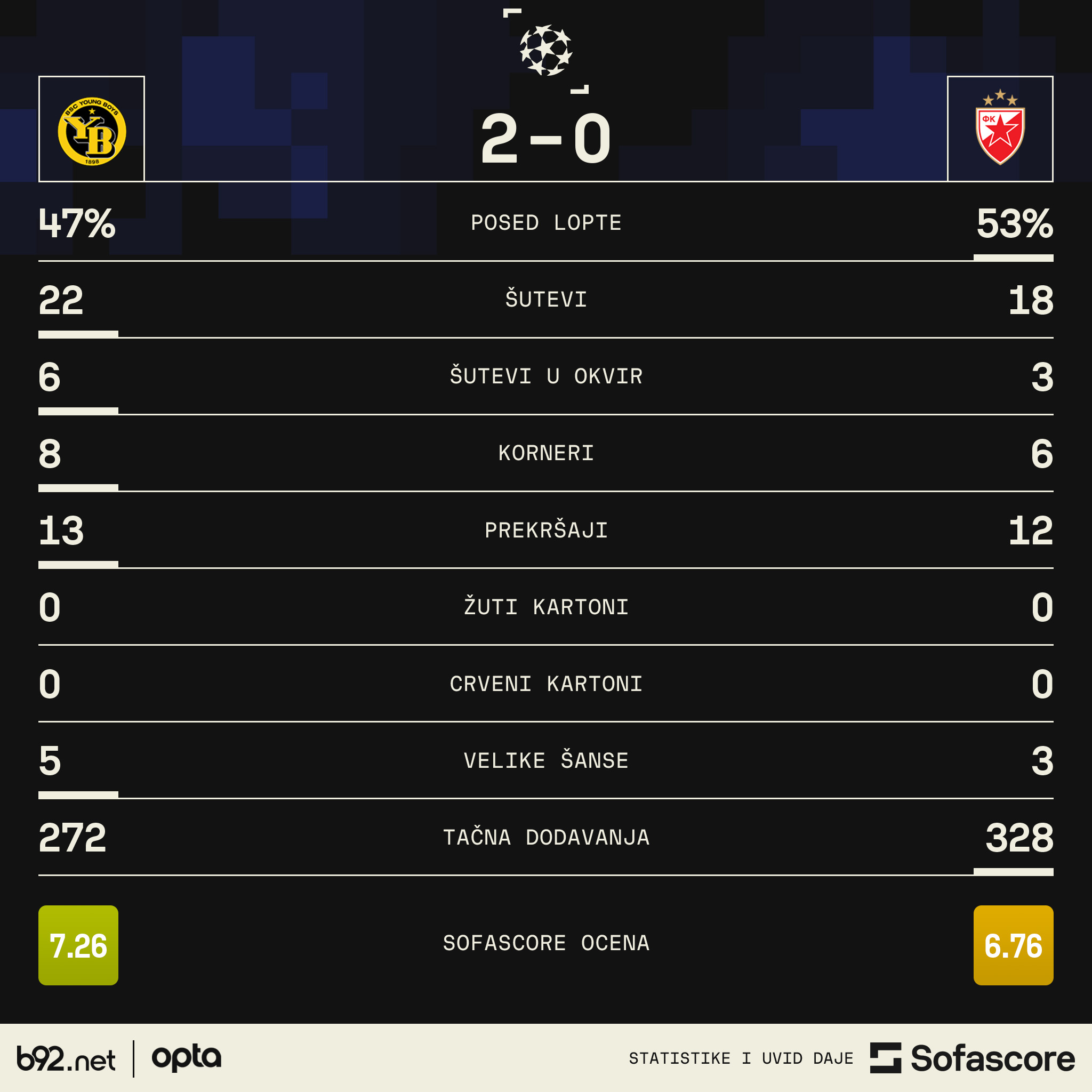 Fudbaleri Crvene zvezde poraženi su u Bernu protiv Jang Bojsa (2:0) i tako ostali bez šanse da i na proleće igraju u Evropi.