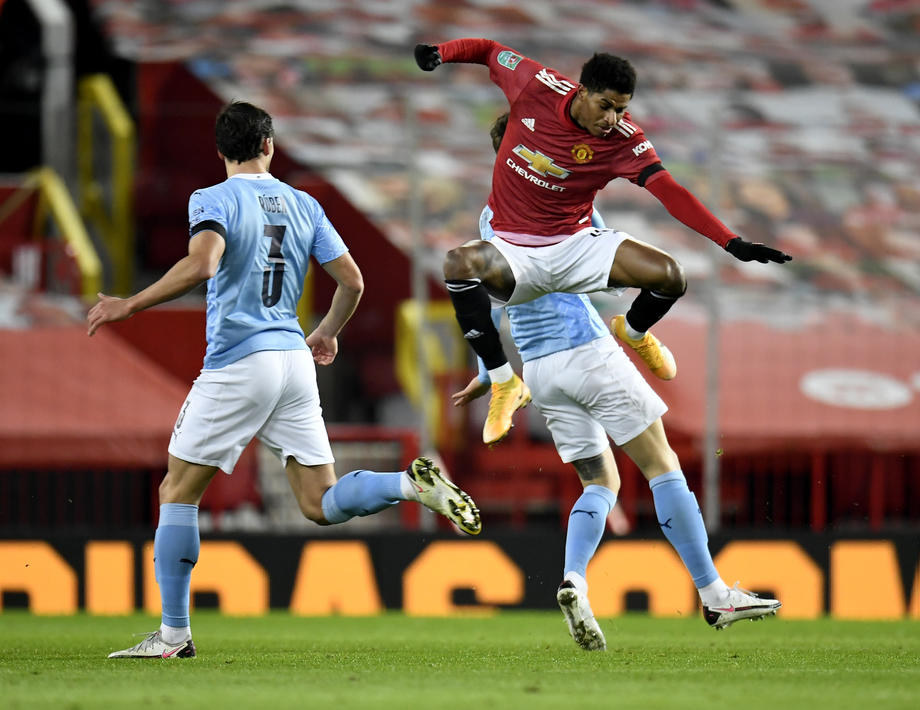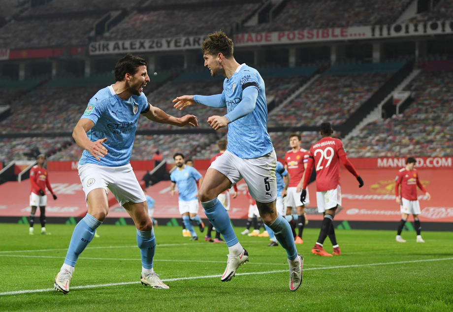 Fudbaleri Mančester sitija plasirali su se u finale Liga kupa Engleske pošto su kao gosti u gradskom derbiju pobedili Mančester junajted sa 2:0 (0:0).