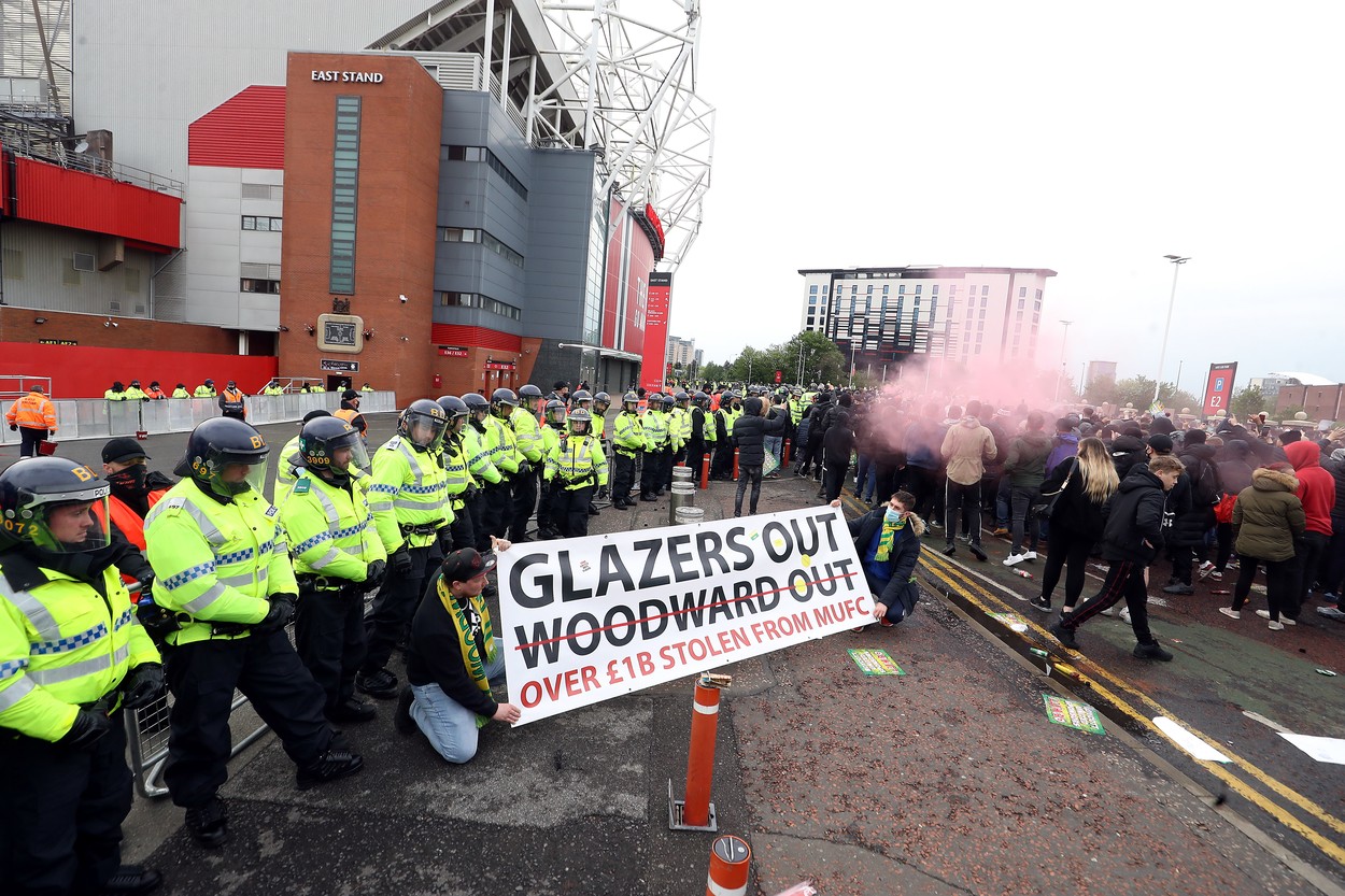 Navijači su protestovali protiv vlasnika, porodice Glejzer, i uspeli su da spreče odigravanje utakmice, pa se ona igra večeras.