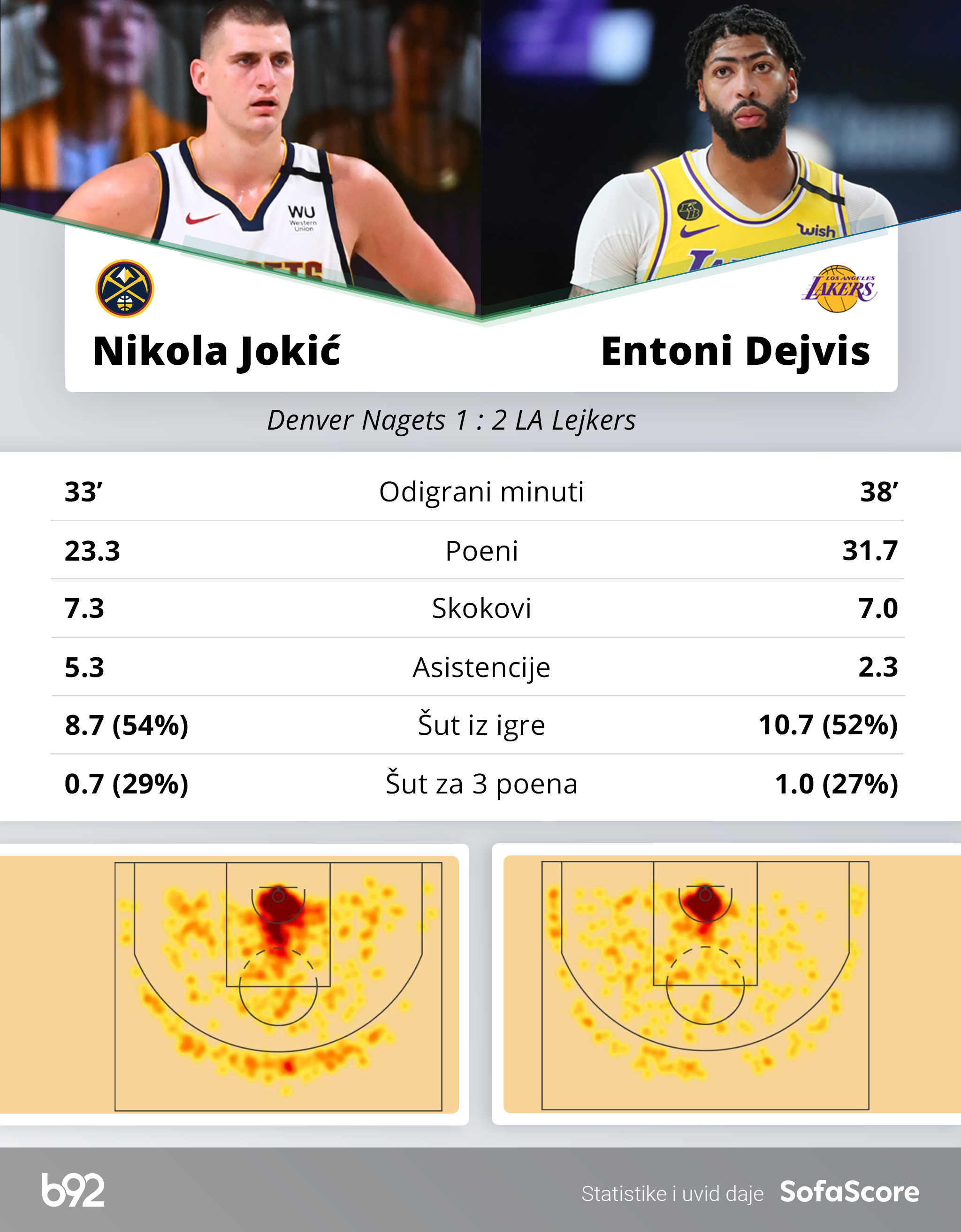 Košarkaši Los Anđeles Lejkersa savladali su Denver Nagetse 114:108 i poveli 3-1 u finalu Zapada NBA plej-ofa.