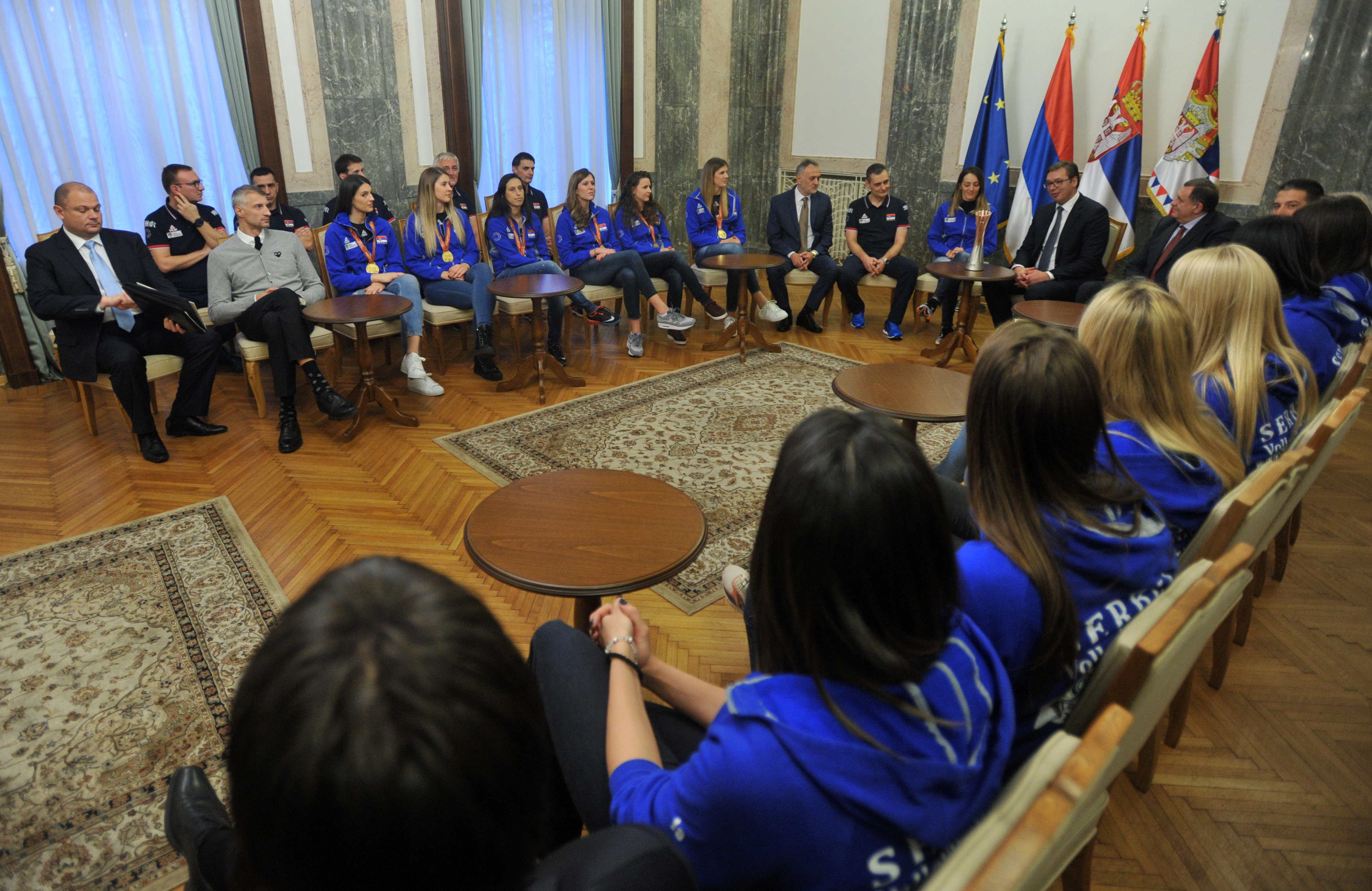 Oko pet hiljada ljudi dočekalo je žensku odbojkašku reprezentaciju Srbiju ispred Starog dvora u Beogradu.