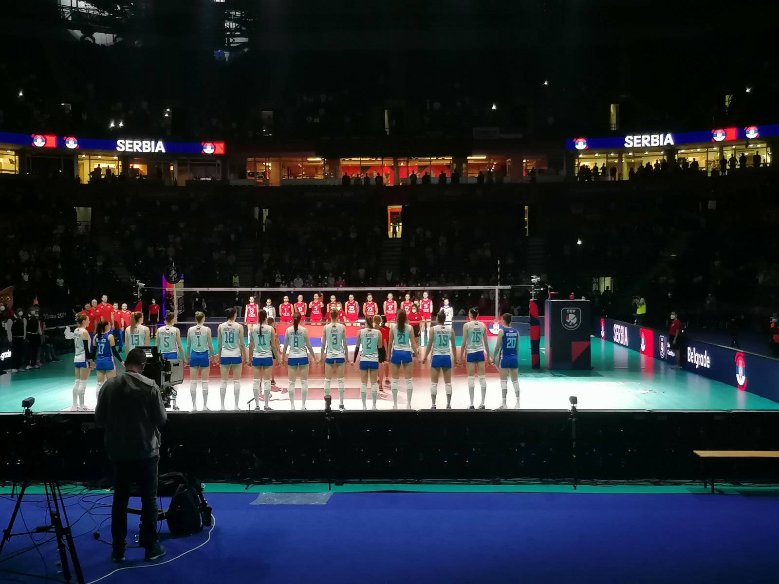 Uskoro poèinje meè izmeðu Srbije i Rusije na EP u Beogradu. #EuroVolleyW pic.twitter.com/yDSvUYJ0iR