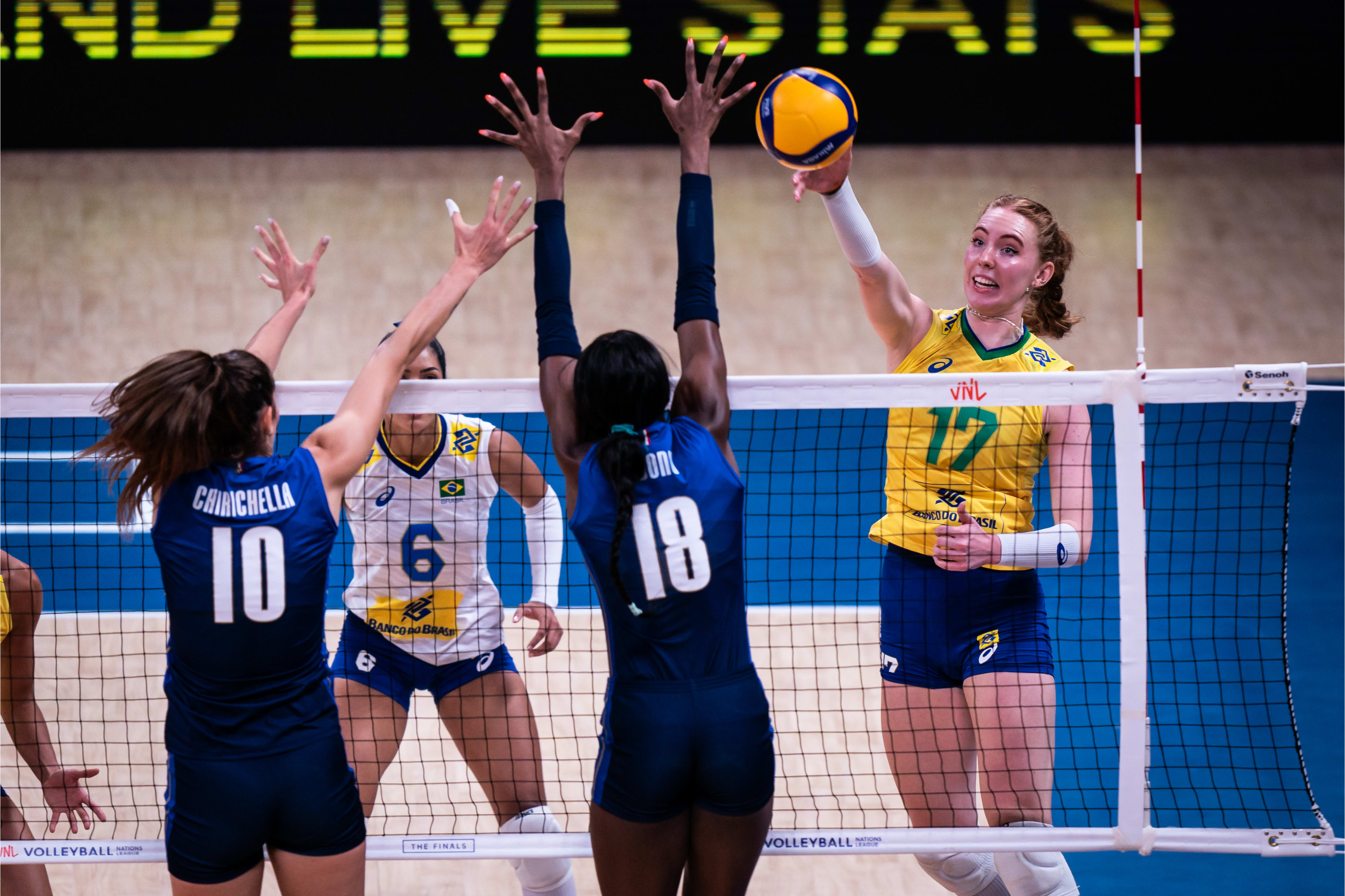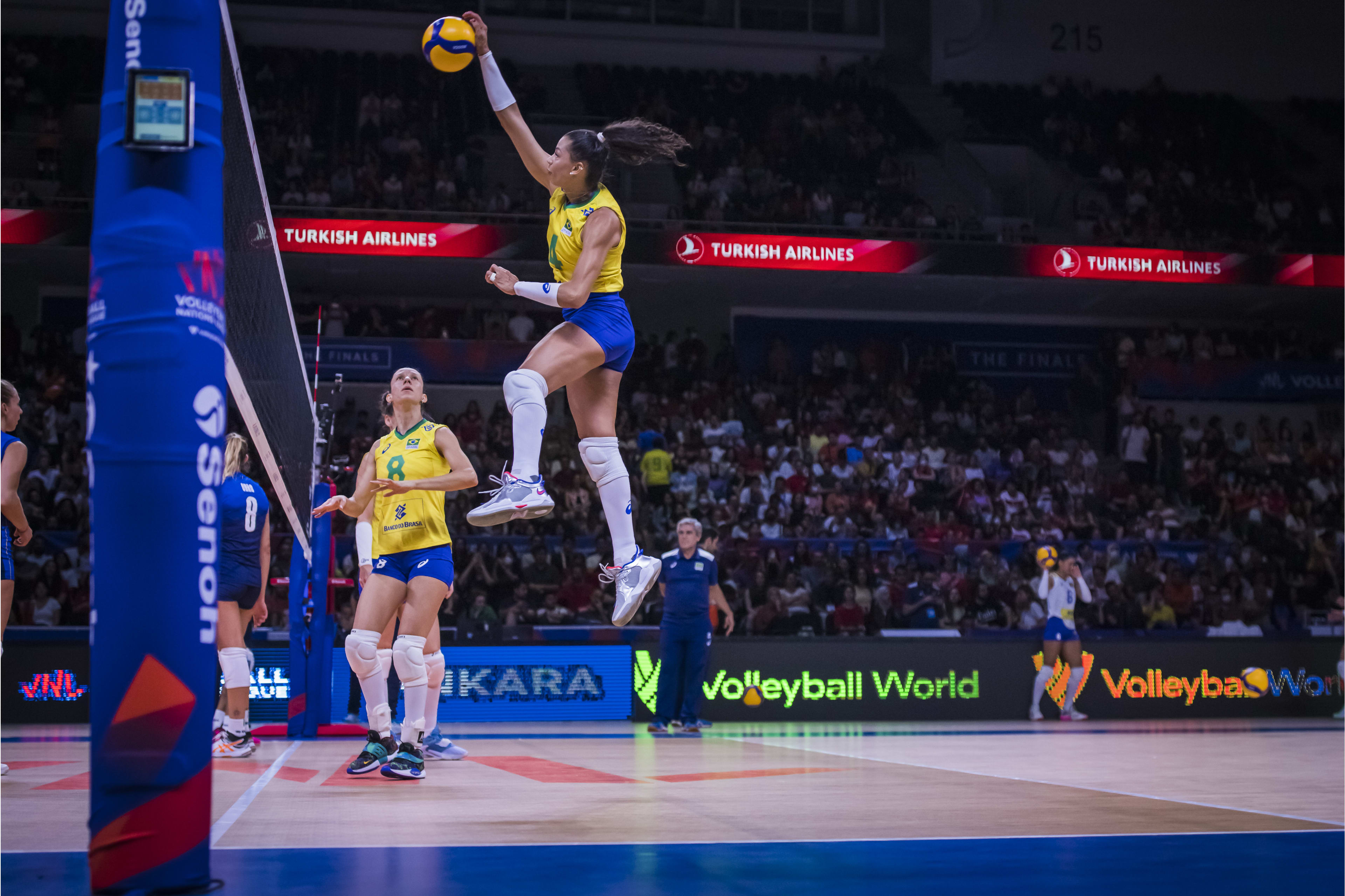 Italy 🇮🇹 is one set away from the #VNL 👑. They lead 2-0 (25-23, 25-22) against Brazil 🇧🇷 in Ankara.