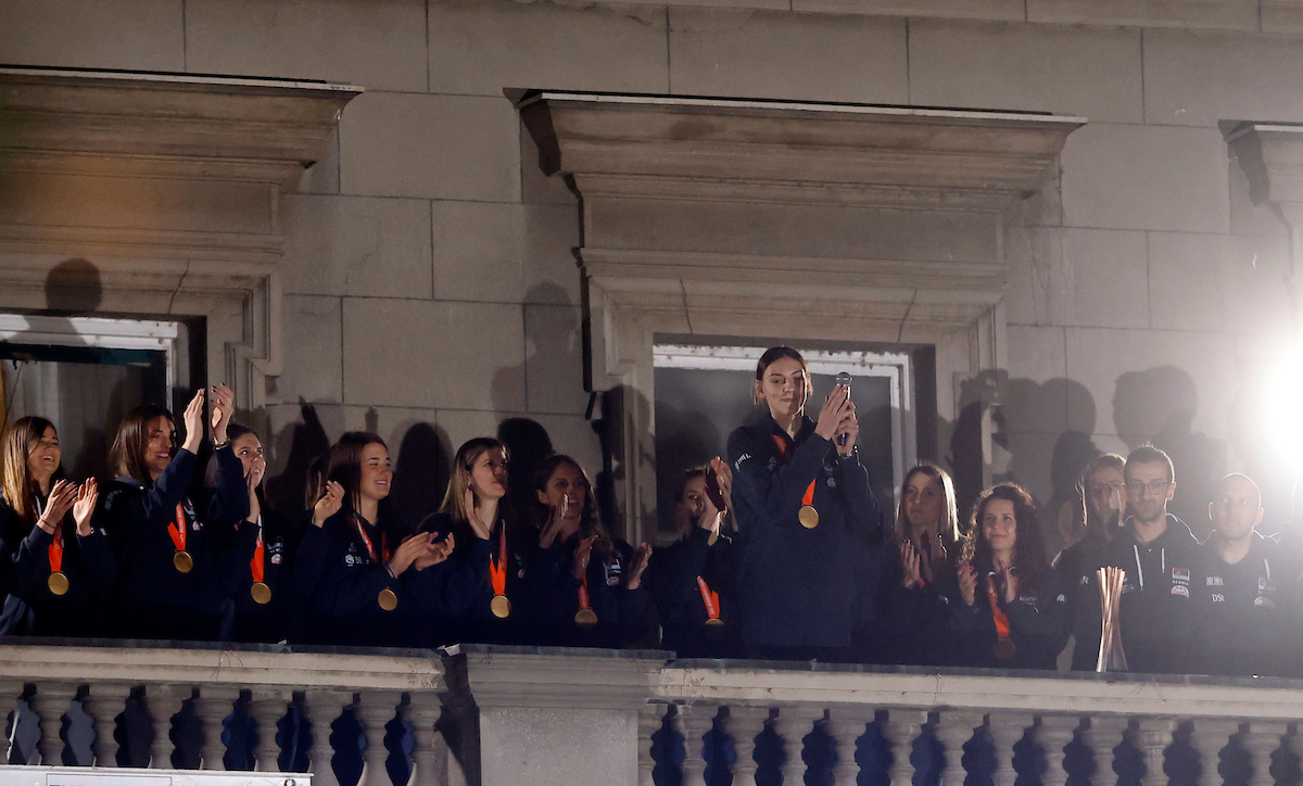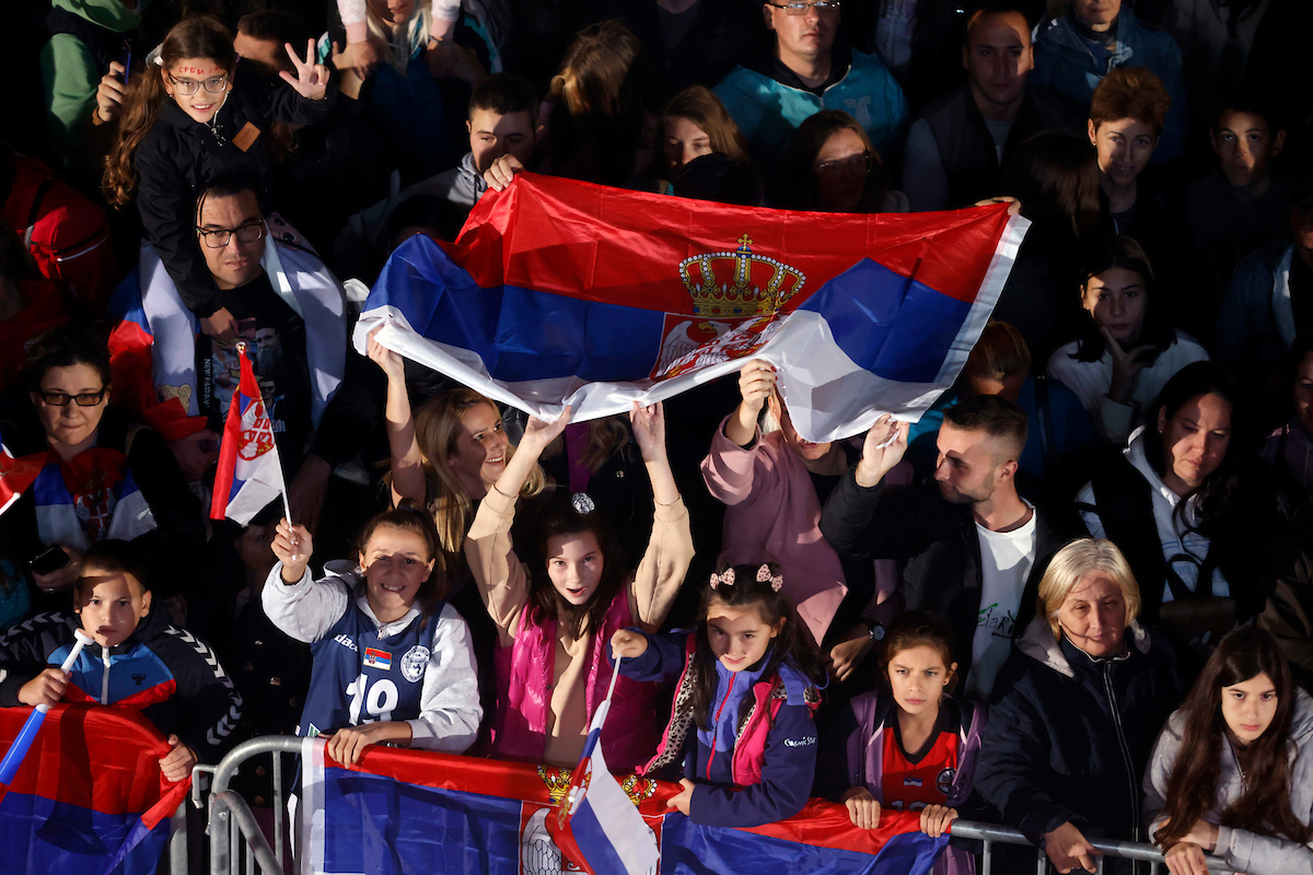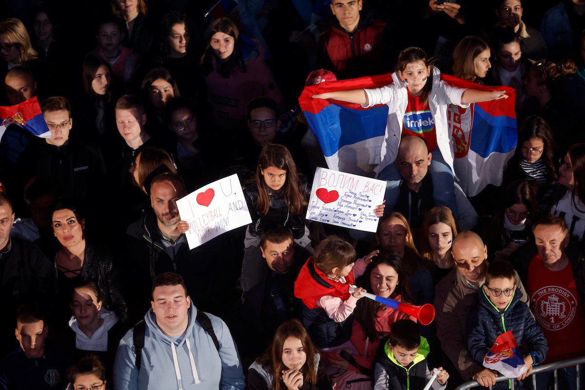 Odbojkašicama Srbije, koje su osvojile Svetsko prvenstvo, priređen je doček ispred skupštine Grada Beograda.
