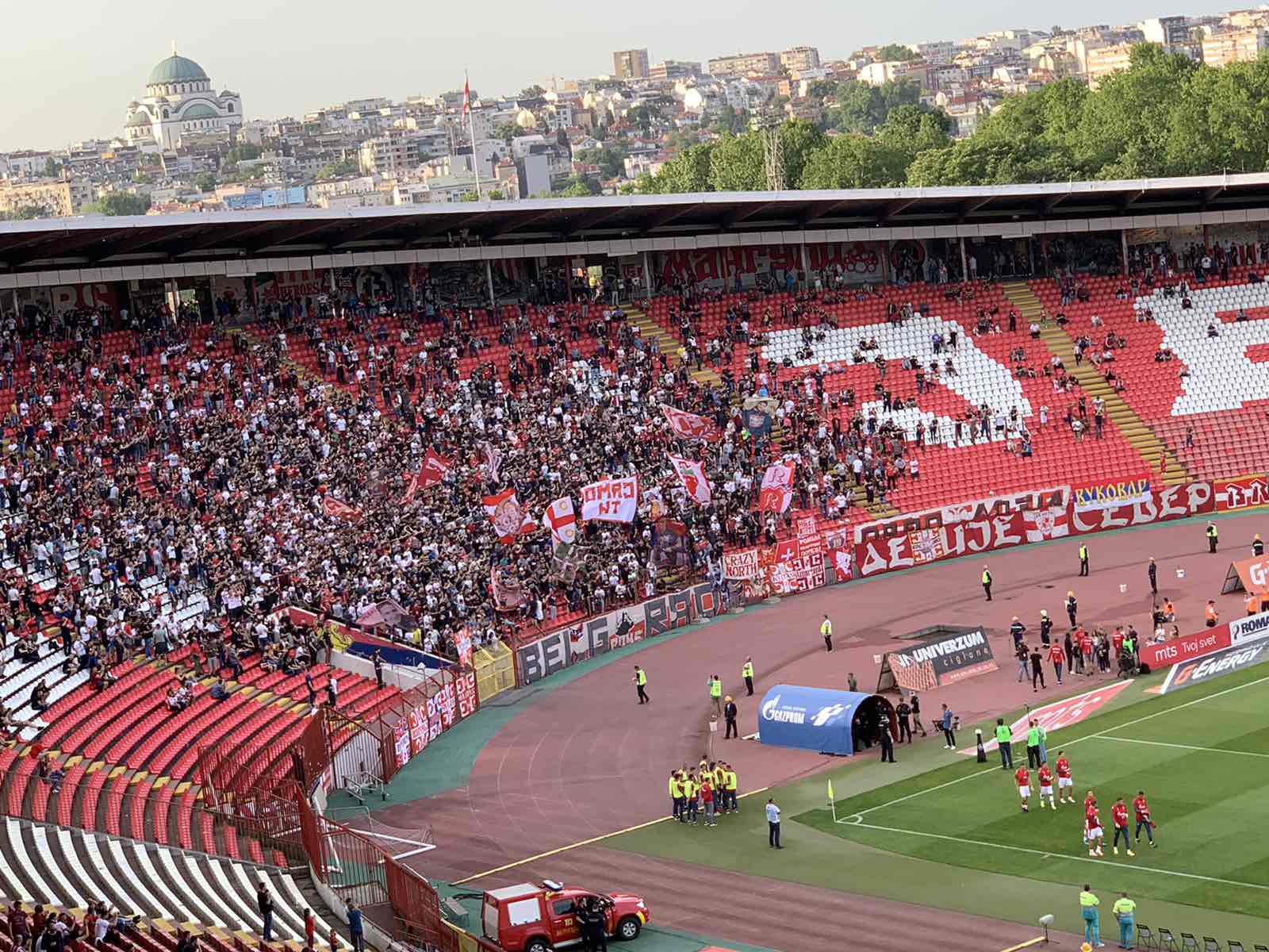 Fudbaleri Crvene zvezde proslavili su treću uzastopnu titulu prvaka Srbije na domaćem terenu, pobedom nad Radnikom od 4:1.