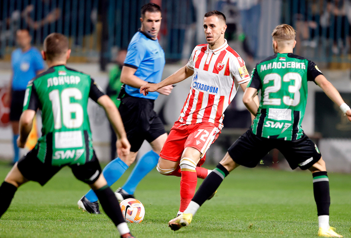 Dosta ofanzivno igra na trenutke Zvezdin zadnji vezni. Još jedan njegov snažan udarac, ali dobro je postavljen bio Stanivuković.