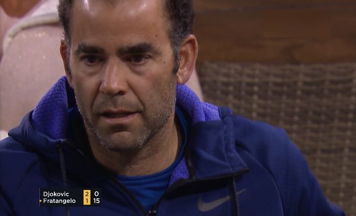 Jedan od najboljih tenisera svih vremena Pit Sampras posmatra sa tribina duel Đokovića i Fratanđela. Novak je često isticao da mu je "Pistol Pit" idol.