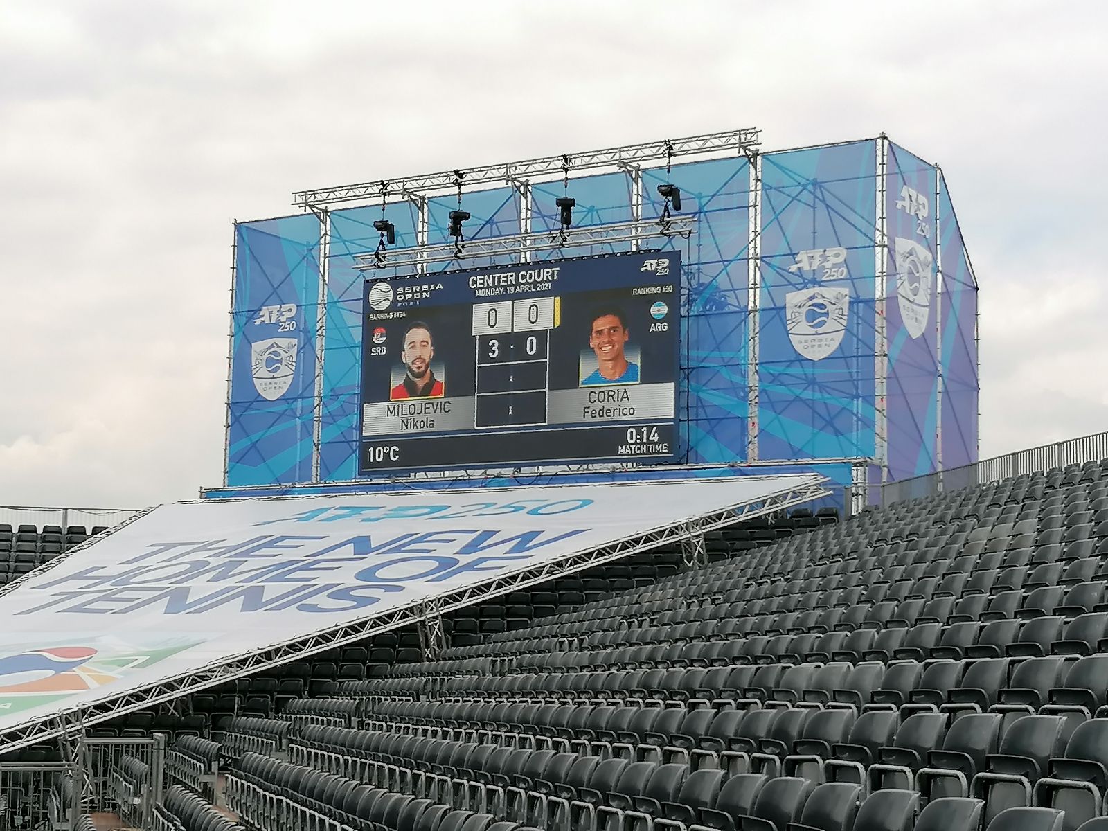 Milojević lako dobija novi servis gem, vodi sa 3:0 u drugom setu. Potvrdio je brejk.