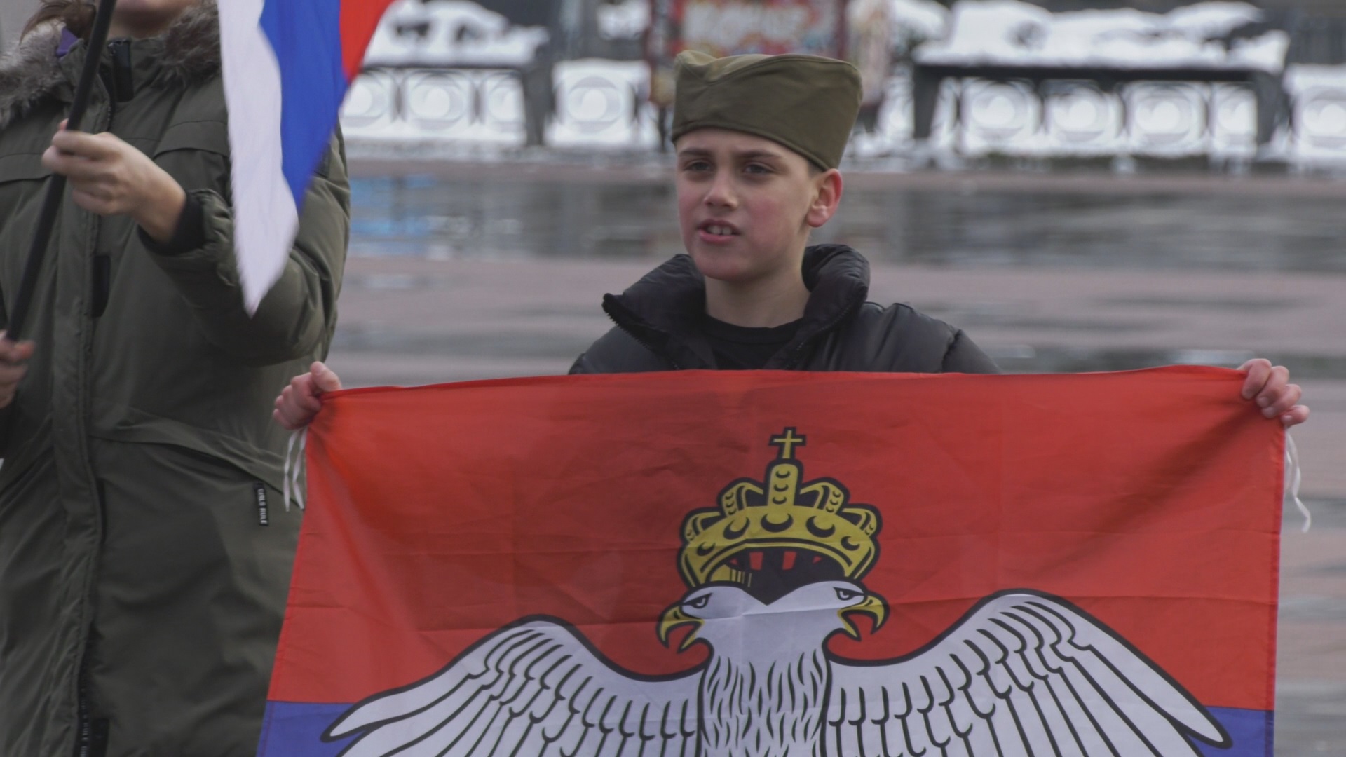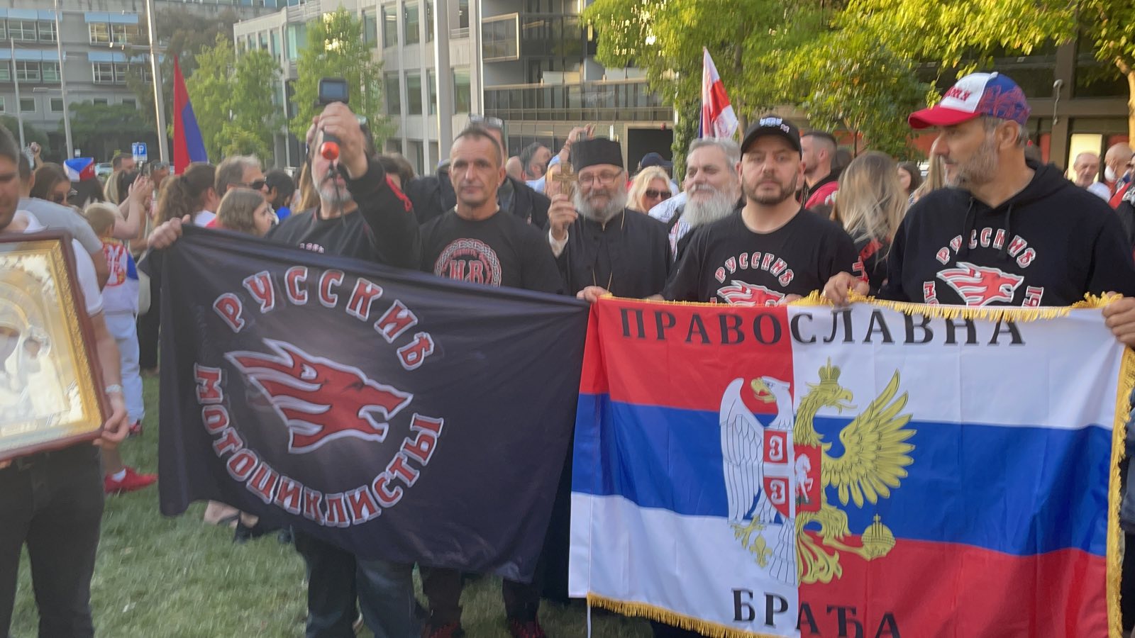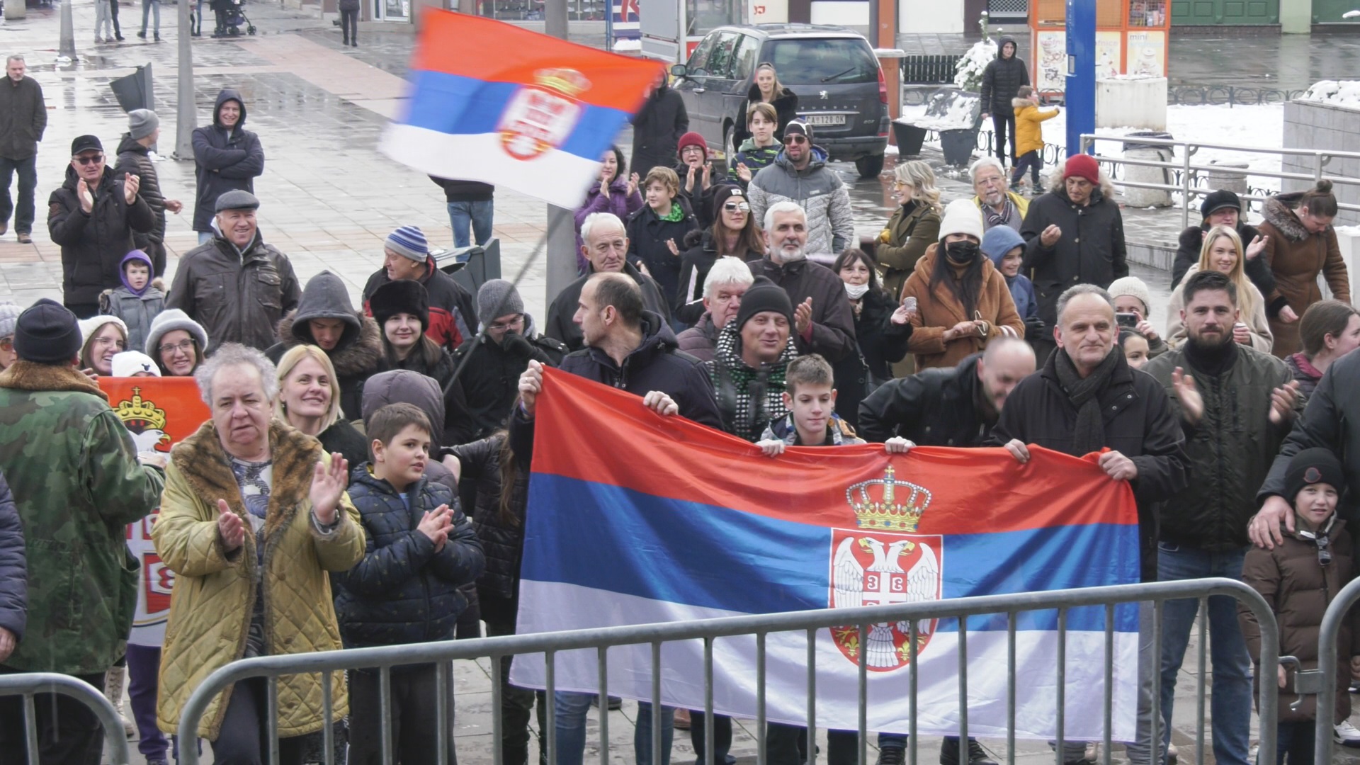 Tu su ljudi sa transparentima, naši igraju kolo uz muziku i prave dobru atmosferu.