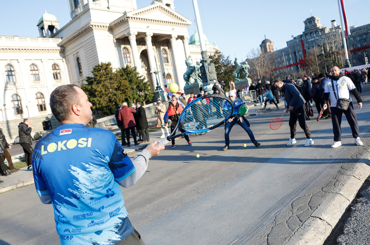 Srpska žurka ispred zgrade u kojoj je Đoković