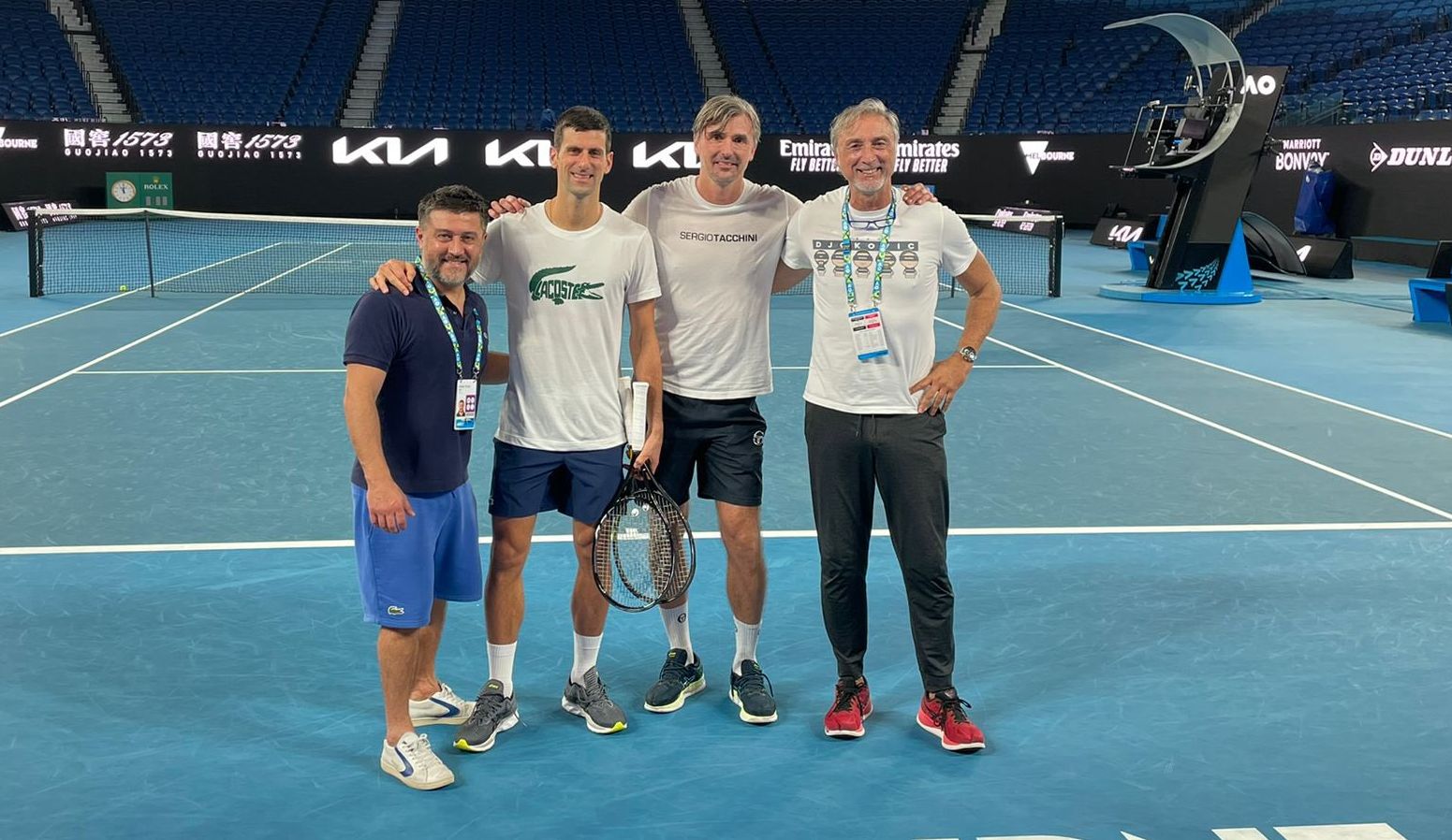 "Novak je na slobodi, bio je malopre na teniskom terenu, trenirao je. Otišao je u Australiju da se bavi tenisom, da se bori za sebe da odigra još jedan AO i još jedan rekord koji tako pomno juri. Otišao je sa najboljim mogućim namerama, sproveo je svu dokumentaciju koja je tražena od njega i na kraju dobio medicinsko izueće sa kojim je otišao. Epilog smo danas saznali. Još jednom napominjem da je Novak sportista i bavi se tenisom, najbolji je svih vremena i on sve što podržava jesu njegovi ideali, principi i oduvek su etiketirali na razne načine, ali se uvek zalagao za slobodu izbora i ništa više".