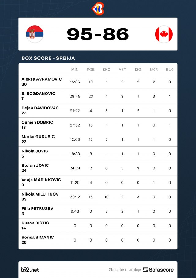 Bogdanović je sa 23 poena opet predvodio "orlove" do pobede, ovaj put nad Kanadom 95:86.