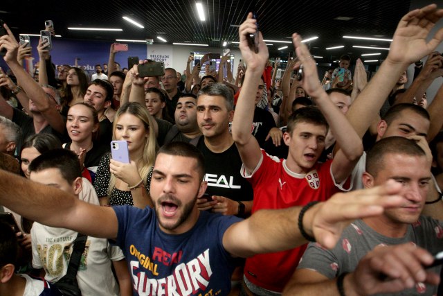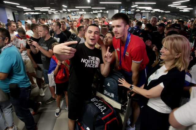 Apsolutni spektakl je dočekao srpske košarkaše na aerodromu "Nikola Tesla" u Beogradu gde je više stotina navijača napravilo pravu "ludnicu".