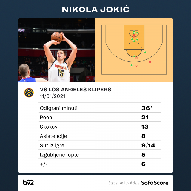 Denveru nije pomoglo ni to što je Nikola Jokić bio blizu tripl-dabla sa 21 poenom (9/14 iz igre), 13 skokova i osam asistencija, ali ni to što je imao 25 poena prednosti u trećoj deonici.