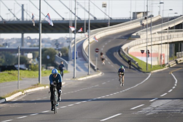 Nakon plivanja kreću u vožnju biciklima veoma brzom stazom sa četiri kruga, stvorenom za novi lični rekord. Dužina staze 90km sa ukupno 200m uspona, na potezu od Ade Ciganlije, glavnom savskom magistralom do skretanja za Železnik, zatim nazad do mosta na Adi preko kojeg se vozi do ulice Omladinskih brigada (kroz šest saobraćajnih traka, zatvorenih za saobraćaj motornih vozila). Tokom trke uživa se u sjajnom pogledu sa mosta na Adi.