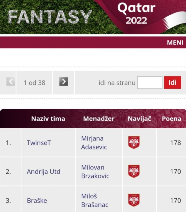 Neizvesno je u Fantasy gde je lider Mirjana Adašević sa 178 bodova. Ima osam više od Milovana Brzakovića i Miloša Brašanca. Njen tim je bio jedan od boljih u trećem kolu iako nijedan igrač iz njenog sastava nije postigao gol.