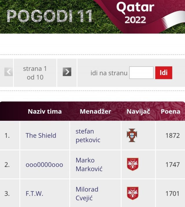 Stefan Petković ubedljivo vodi u Pogodi 11 od starta prvenstva. U trećem kolu je osvojio 601 poen, skoro savršeno procenivši postave na utakmicama Kostarika – Nemačka, Poljska – Argentina, Vels –Engleska i Ekvador – Senegal.