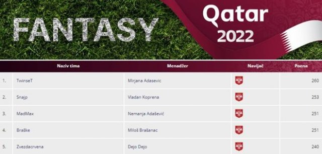 U Fantaziju Mirjana Adašević je na svega sedam ispred Vladana Koprena, dok su u konkurenciji za "titulu" još Nemanja Adašević i Miloš Brašanac sa po devet poena zaostatka.