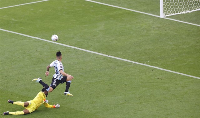 Jasno je da je Lautaro bio u ofsajdu ako se gledaju štoper i desni bek rivala, međutim, na ovim fotografijama deluje kao da su sudije zaboravile na liniju, koja je povučena od levog beka Saudijske Arabije, koji je, čini se, bio najbliži svom golmanu.