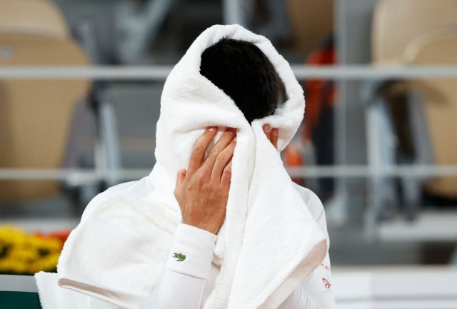 Dan pred polufinale Rolan Garosa sa Stefanosom Cicipasom trenirao je samo u večernjim satima, takođe sa bandažom na bolnom mestu.