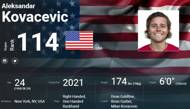 Amerikanac je trenutno 114. teniser sveta, ima 24 godine i profesionalac je od 2021. godine.