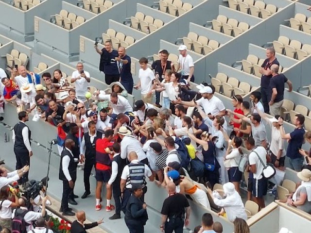 Slikao se sa svima, a u jednom momentu, nakon date izjave za "Eurosport", uleteo je u masu na tribini, izgrlio se sa svima i uslikao "selfi".