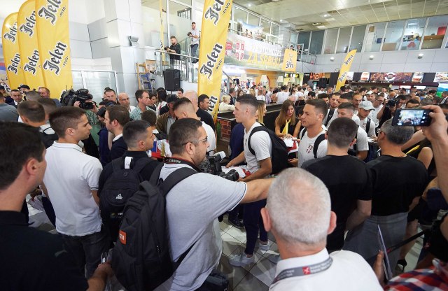 Srpski fudbaleri ispraćeni su u Rusiju uz zvuke pesme "Pukni zoro". Avion sa srpskim fudbalerima je tačno u 10.32 odleteo sa aerodroma "Nikola Tesla".